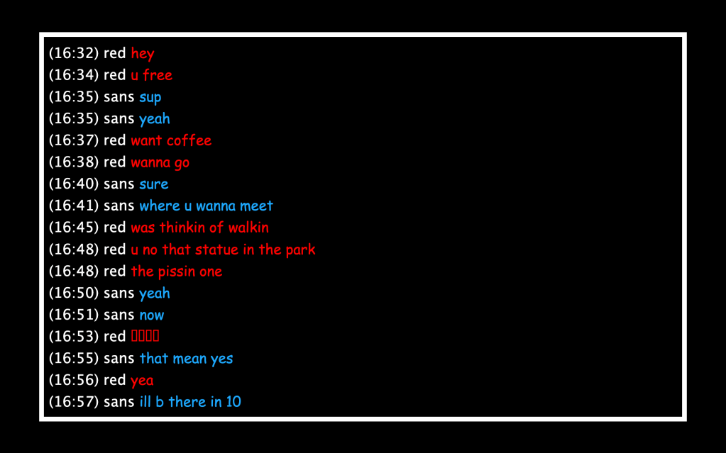 Sans frowned, as he opened his phone again, navigating to the text Red had sent him.