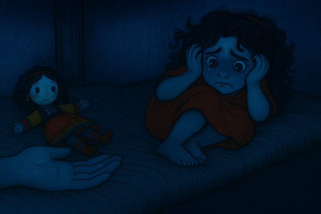 Stella’s tiny form was curled up on her side near the back wall, hands over her ears as she rocked back and forth in terrified silence.